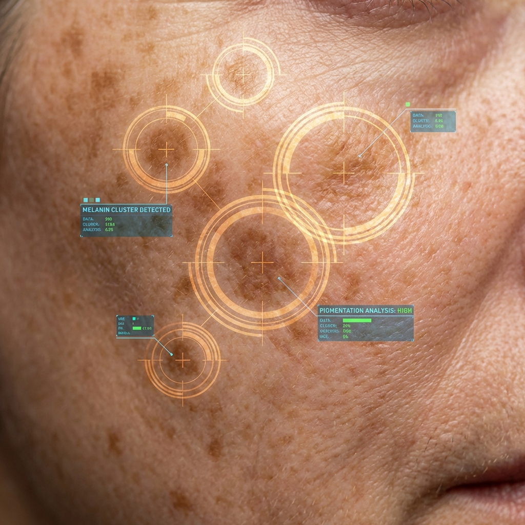 Notre IA de dernière génération examine votre peau sous tous les angles pour détecter 5 marqueurs dermatologiques invisibles à l'œil nu.